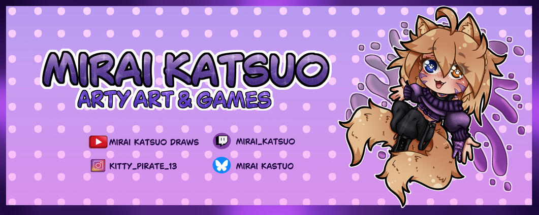 Hi I'm Mirai (The Kitty Pirate)! I draw the arty art stuffs and will gladly yap about cats, anime and video games!